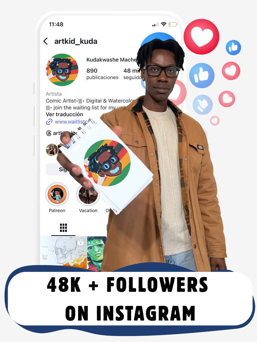 I’m Kudakwashe “Kuda” Machekano, a comic artist and illustrator from Zimbabwe, now based in Washington, D.C. I specialize in character design and storytelling through digital and watercolor art, and I’ve built a community of over 45K artists and fans who share my passion for bringing ideas to life.