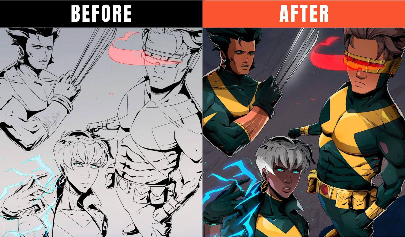 You’ll go step by step through anatomy, character design, digital painting, watercolor, and storytelling, learning how to build complete comic-style illustrations from the ground up.